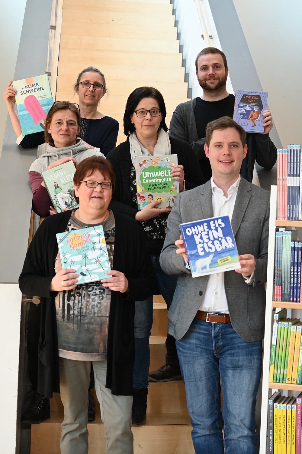 Eine weitere gute Nachricht: In den Genuss der Bücher kommen nicht nur Büchereinutzer:innen. Die Stadtbücherei bedient nämlich auch 24 Kitas und 34 Schulen, die Medienboxen zu Umweltthemen bestellen können oder mit ihren Klassen und Gruppen bei einem Besuch in der Stadtbücherei Bücher zum Thema ausleihen können. „Mit dem erweiterten Angebot leisten wir einen großen Beitrag zur Umwelterziehung in den Schulen und Kitas – und genau das ist heute besonders wichtig“, freut sich die Leiterin der Stadtbücherei, Christiane Weiß, und verweist darauf, dass nahezu die Hälfte der neuen Bücher mehrfach bestellt wurden, um auch die Zweigstellen St. Heinrich, St. Kunigund und Maria Hilf mit Bildungsmaterial zu versorgen.