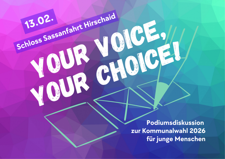 Unter dem Motto „Your Voice, Your Choice!“ laden Kreisjugendring Bamberg-Land, Kommunale Jugendarbeit, Jugendkreistag und Bildungsregion Bamberg junge Wählerinnen und Wähler im Landkreis Bamberg zu einer Podiumsdiskussion ein. Dort haben alle jungen Menschen die Möglichkeit, den Landrats-Kandidaten im Vorfeld zur Kommunalwahl 2026 ihre Fragen zu stellen und in direkten Kontakt mit