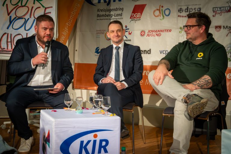 Volles Haus, konzentrierte Atmosphäre und ein außergewöhnlich gut vorbereitetes Publikum: Bei der Podiumsdiskussion „Your Voice, Your Choice“ im Schloss Sassanfahrt stellten sich Mitte Februar die fünf Landratskandidaten den Fragen junger Menschen aus dem gesamten Landkreis. Eingeladen hatten der Jugendkreistag Bamberg, das Bildungsbüro des Landkreises, der Kreisjugendring Bamberg-Land und die Kommunale Jugendarbeit mit dem erklärten Ziel, insbesondere Erstwählerinnen und Erstwählern Orientierung für die Kommunalwahl am 8. März zu geben. Die Moderation übernahm Richard Padberg von Radio Bamberg.