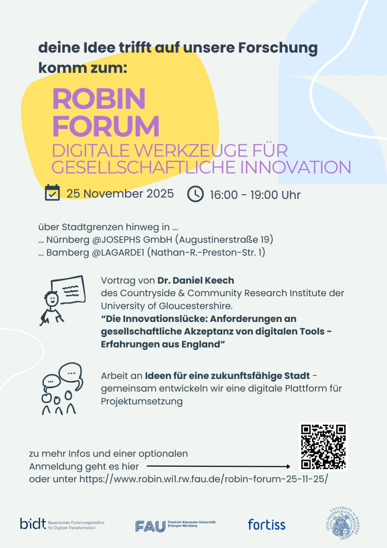 Wie können wir gemeinsam Herausforderungen unserer Zeit begegnen? Welche Rolle spielt die Zivilgesellschaft dabei und wie können wir die zahlreichen innovativen und vielversprechenden Ideen aus der Zivilgesellschaft leichter umsetzen? Das fragen wir uns im Projekt ROBIN, in dem die Universitäten Bamberg und Erlangen-Nürnberg seit knapp zwei Jahren zusammenarbeiten und mit